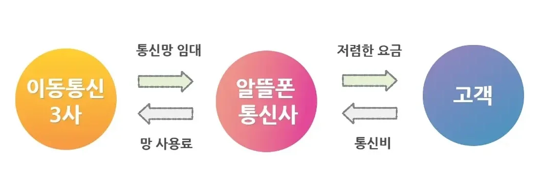 2010년 이명박 정부에서는 국민의 통신비 부담을 줄이기 위해서 ‘이동통신 재판매 제도(일명 알뜰폰 요금제)’ 조항을 만들어 기존 이동통신망 사업자의 네크워크를 빌려 국민들에게 통신서비스를 제공하게끔 제도를 바꾸었습니다. 이때 통신망을 보유한 사업자는 망을 빌리고자 하는 알뜰폰 사업자에게 정해진 도매가로 빌려주어야 합니다.