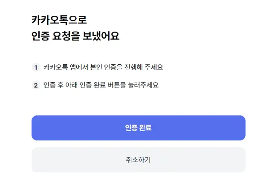 카카오, 네이버, 토스, 신용카드 중에 편한 걸로 인증하시면 됩니다. 저는 카카오가 편해서 카카오 지갑으로 인증 완료했습니다.