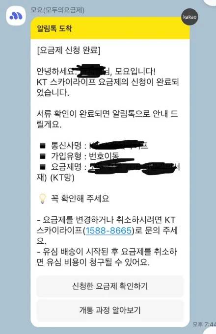여기서 주의할 점은 나중에 유심을 받고 새로운 통신사로 개통하면 기존 통신사는 자동으로 해지되기 때문에 굳이 개통 전에 먼저 기존 통신사를 해지 요청을 하진 말아야 한다는 점입니다.