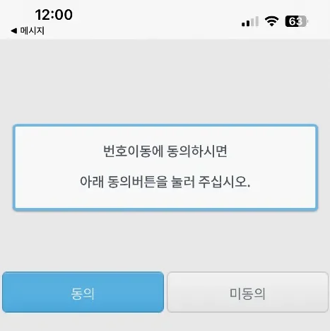 번호 이동 동의 버튼을 눌러줍니다.