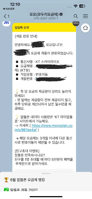 동의하면 아래와 같은 문자가 날라옵니다. 아래 링크를 눌러 번호이동을 확인해주세요.